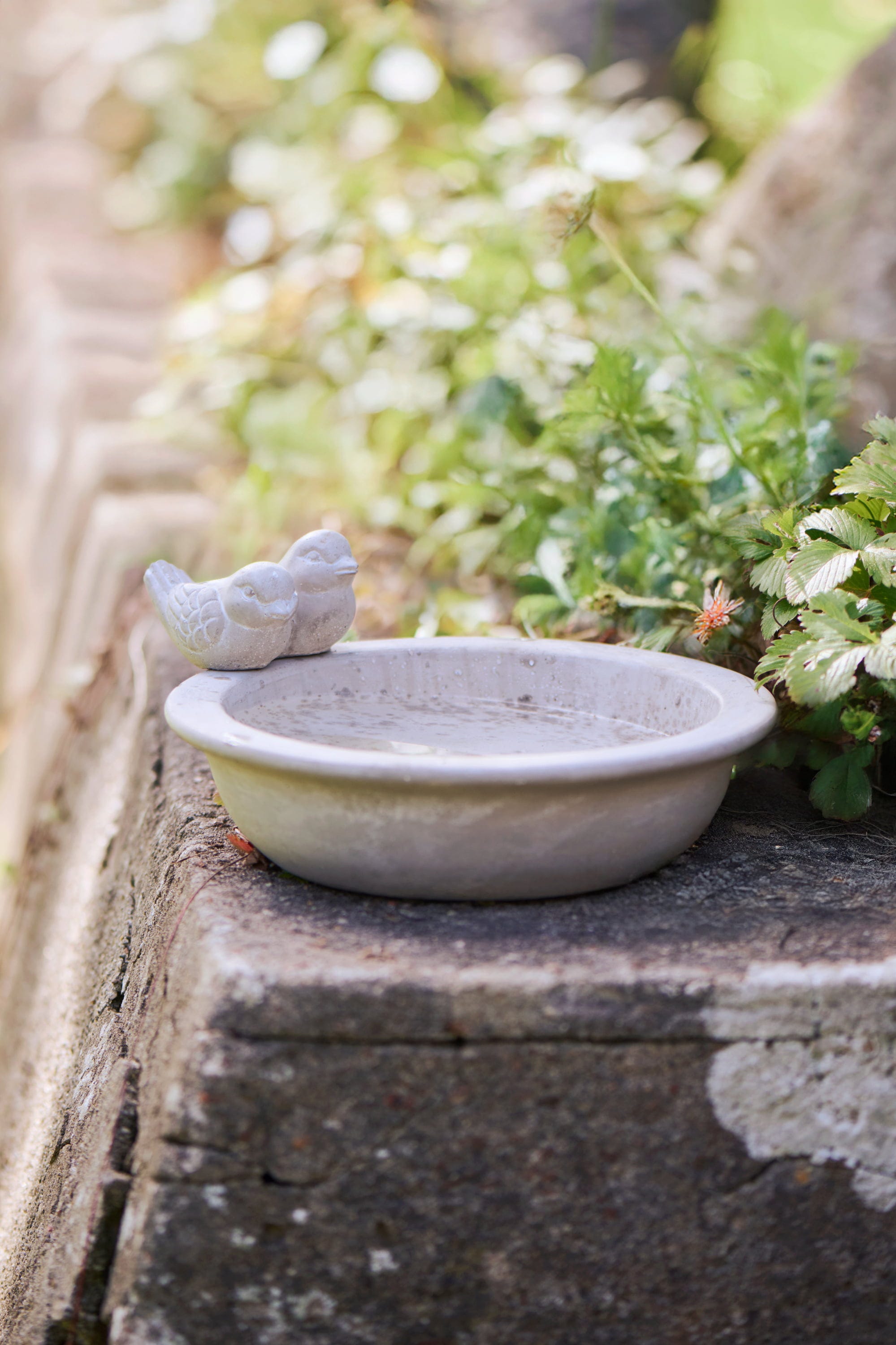 Die ersten beiden Vögelchen haben sich in diesem Vogelbad bereits niedergelassen und die nächsten werden bestimmt bald folgen. Mit diesem dekorativen Vogelbad bietest du den gefiederten Besuchern deines Gartens einen sicheren Platz, um sich zu erfrischen.