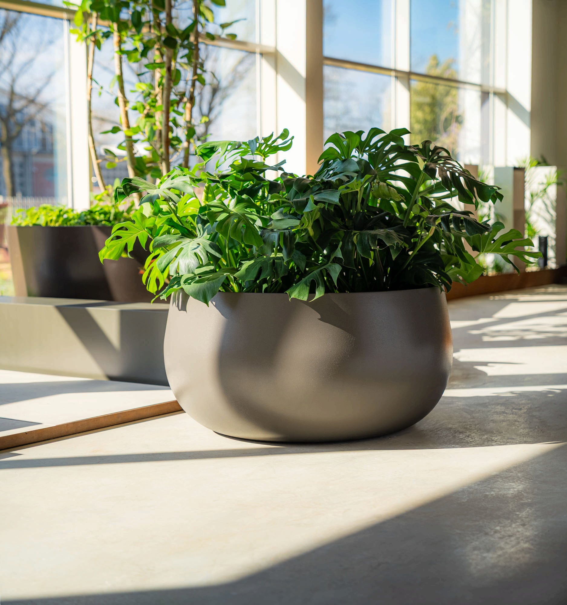 Der Kontrast aus sanft abgerundeter Form und scharfer Kante verleiht dem Pflanzgefäß Lora seine einzigartige Optik, mit der es einen besonders stilvollen Akzent in deinem Garten oder auf deiner Terrasse setzt. Es bringt moderne Ästhetik in deinen Außenbereich und unterstreicht zugleich eine ruhige Atmosphäre. So ist es die perfekte Ergänzung einer natürlichen Umgebung und fügt sich harmonisch in diese ein.