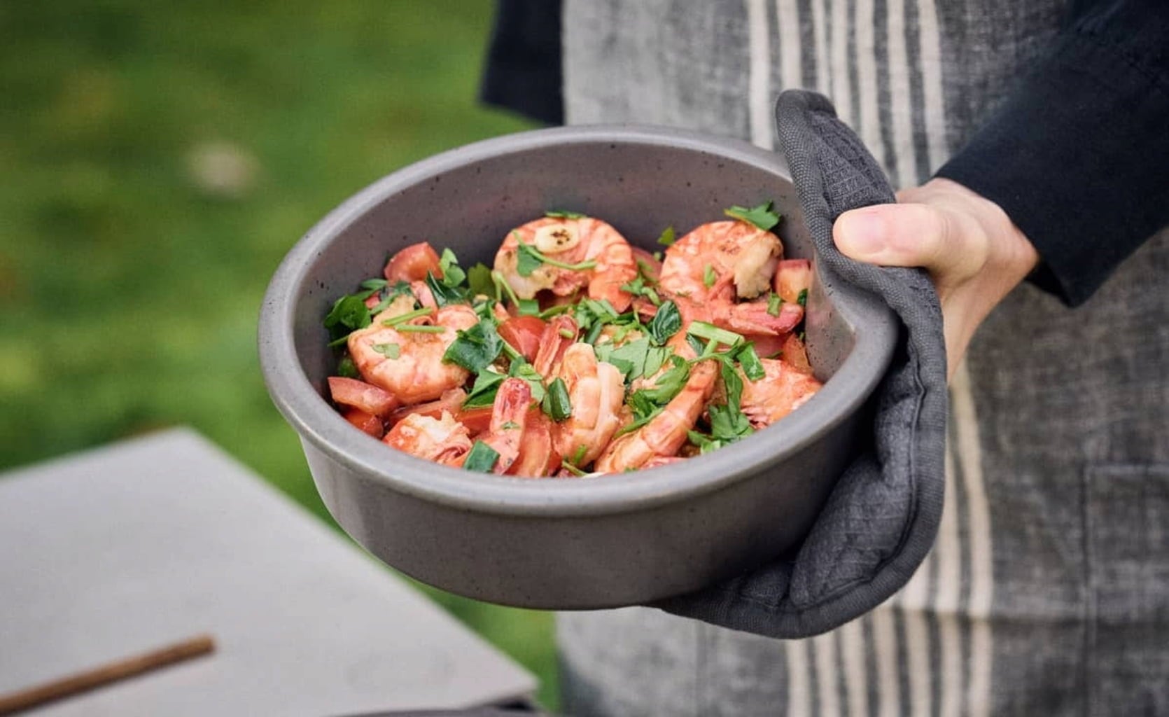 Das innovative, feuerfeste Kochgeschirr für Grill & Backofen macht auch beim Servieren eine stilvolle Figur. Der Keltentopf kann direkt über die Flamme gestellt und muss vorher nicht gewässert werden. Es dauert nur einige Minuten, bis die Keramik heiß ist. Dank seiner speziellen Glasur kann ohne Fett gebraten werden - für eine gesundheitsbewusste Küche und intensive Röstaromen.