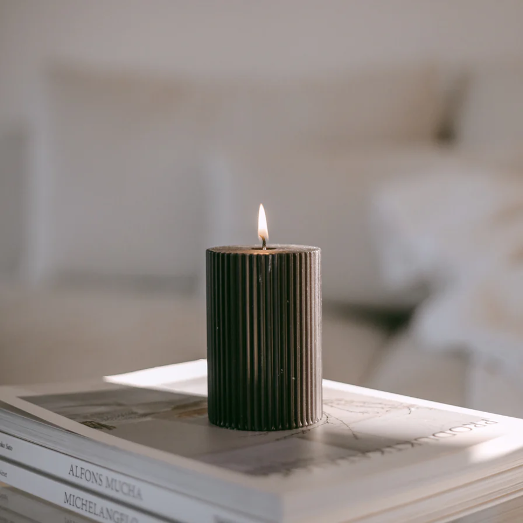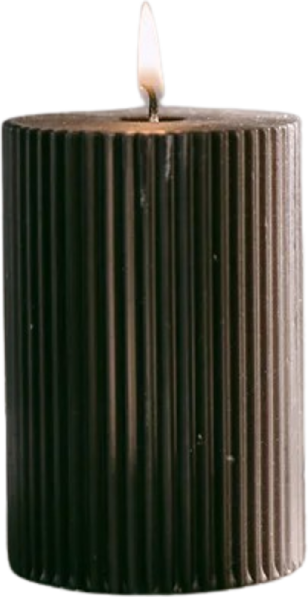 Eulenschnitt Blockkerze Rillen Klein, Schwarz