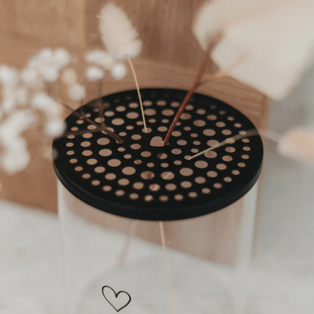 Verwandle ein Vorratsglas im Handumdrehen in eine elegante Blumenvase. Der schwarze Metalldeckel Blumenhalter bietet vielseitige Möglichkeiten für kreative Blumenarrangements – von Trockenblumen über Frühblüher bis hin zu winterlichen Zweigen. Das kleine ausgestanzte Herz in der Mitte sorgt für einen charmanten, liebevollen Akzent. Minimalistisch, modern und jedes Mal neu arrangierbar.