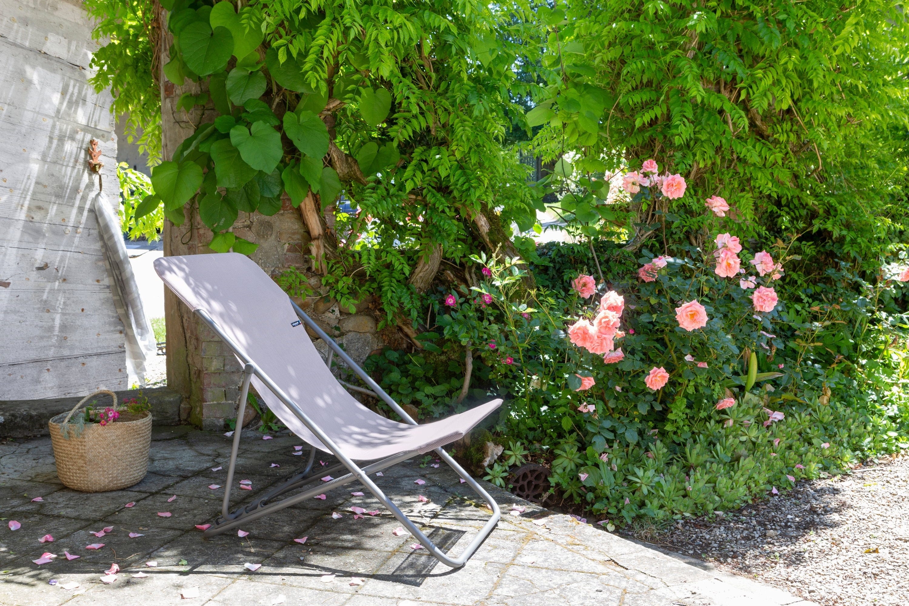 Die Extrabreite macht es hier aus: Ganze 62 cm stehen innerhalb des Rahmens für breitere Schultern zur Verfügung. Der Bezug ist atmungsaktiv und praktischerweise abnehmbar. Unter den Kniekehlen ist der Stoff verstärkt: Eine Querstange stört hier nicht den Komfort. Zusammengeklappt ist der verstellbare Liegestuhl mit nur 6 cm durchaus platzsparend zu verstauen. Die vier Positionen, die sich mittels eines Sicherheitsrasters kinderleicht einstellen lassen, sorgen für ein Höchstmaß an Flexibilität und Gemütlichkeit.