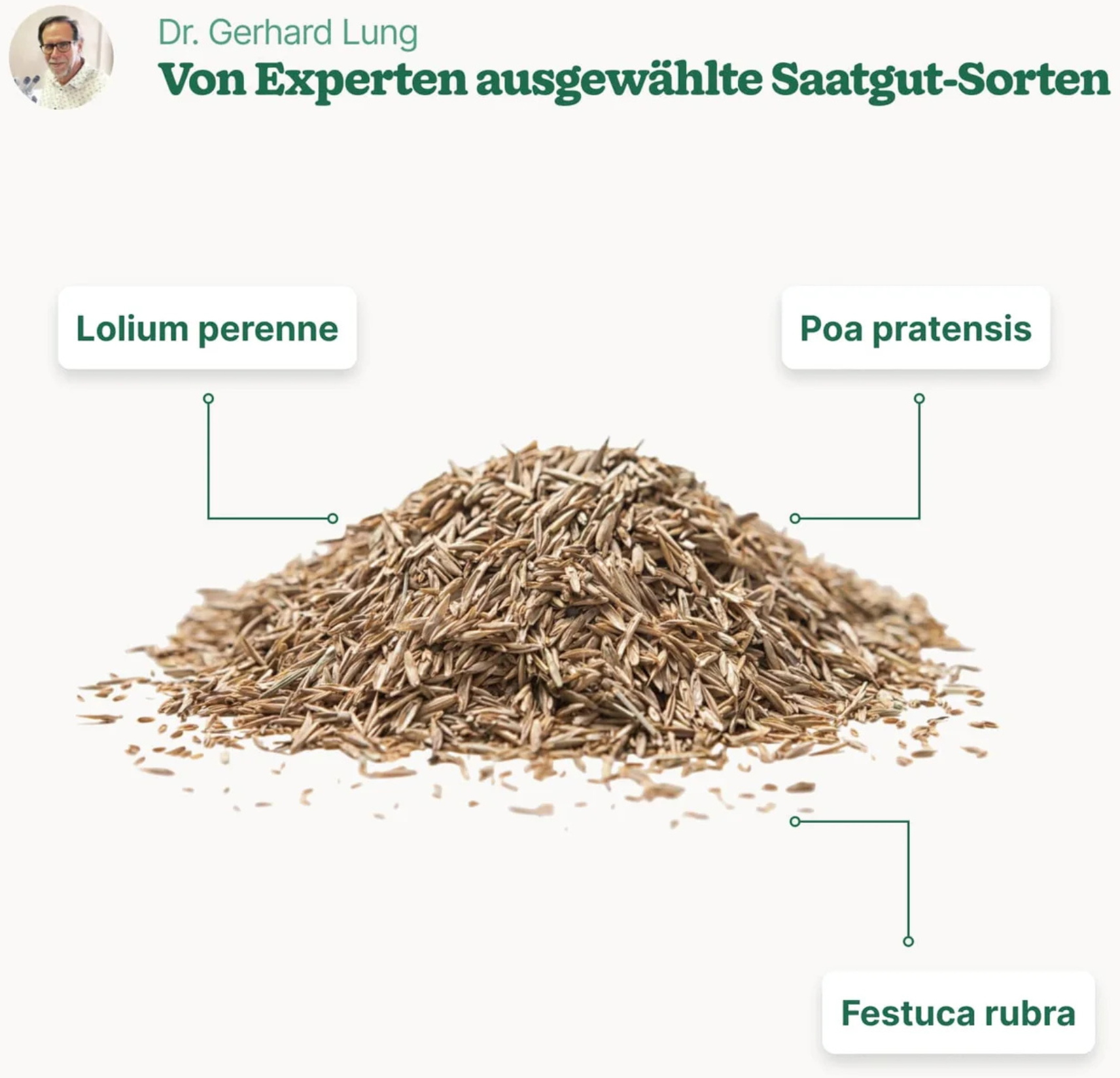 - Saat gleichmäßig ausbringen (am besten kreuzweise: 10 g/m² längs + 10 g/m² quer)