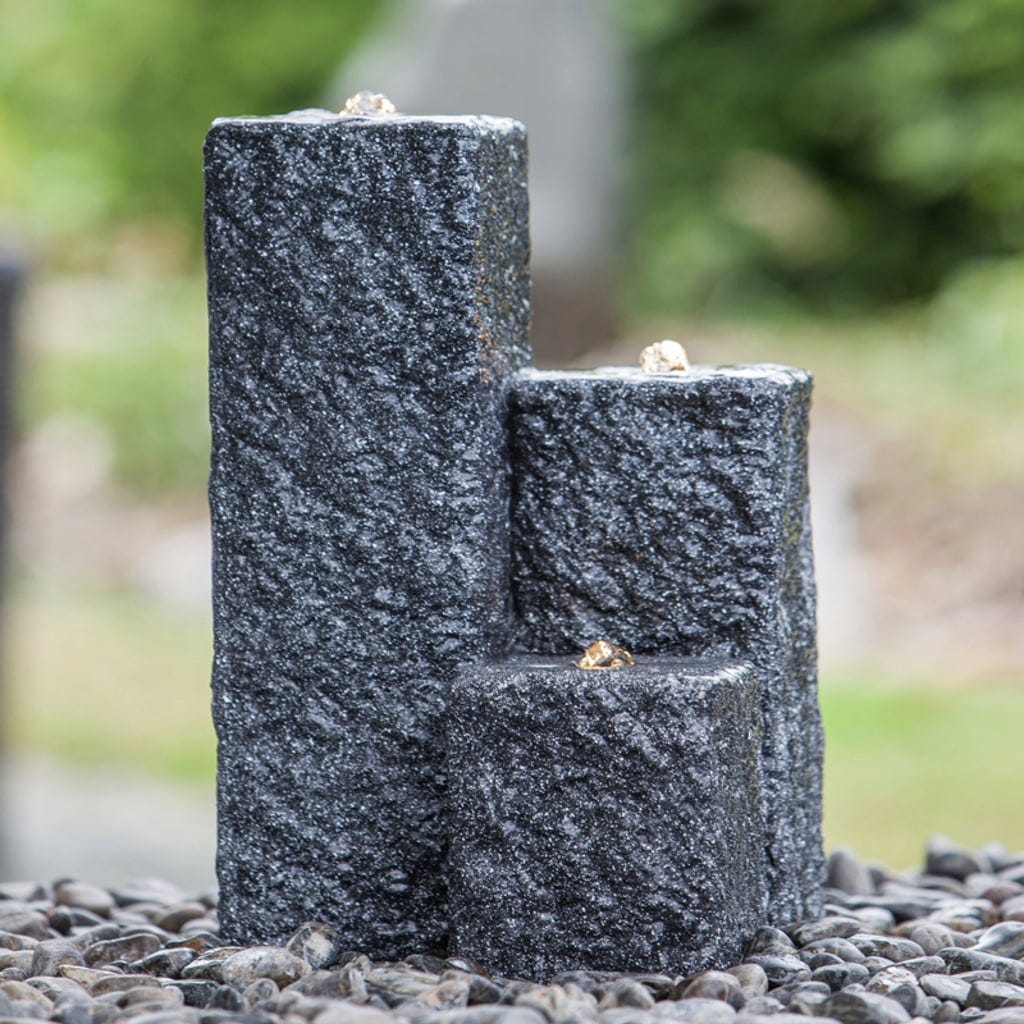 HEISSNER Gartenbrunnen Neptun LED - Schwarz, 12 x 12 x 15/25/40 cm