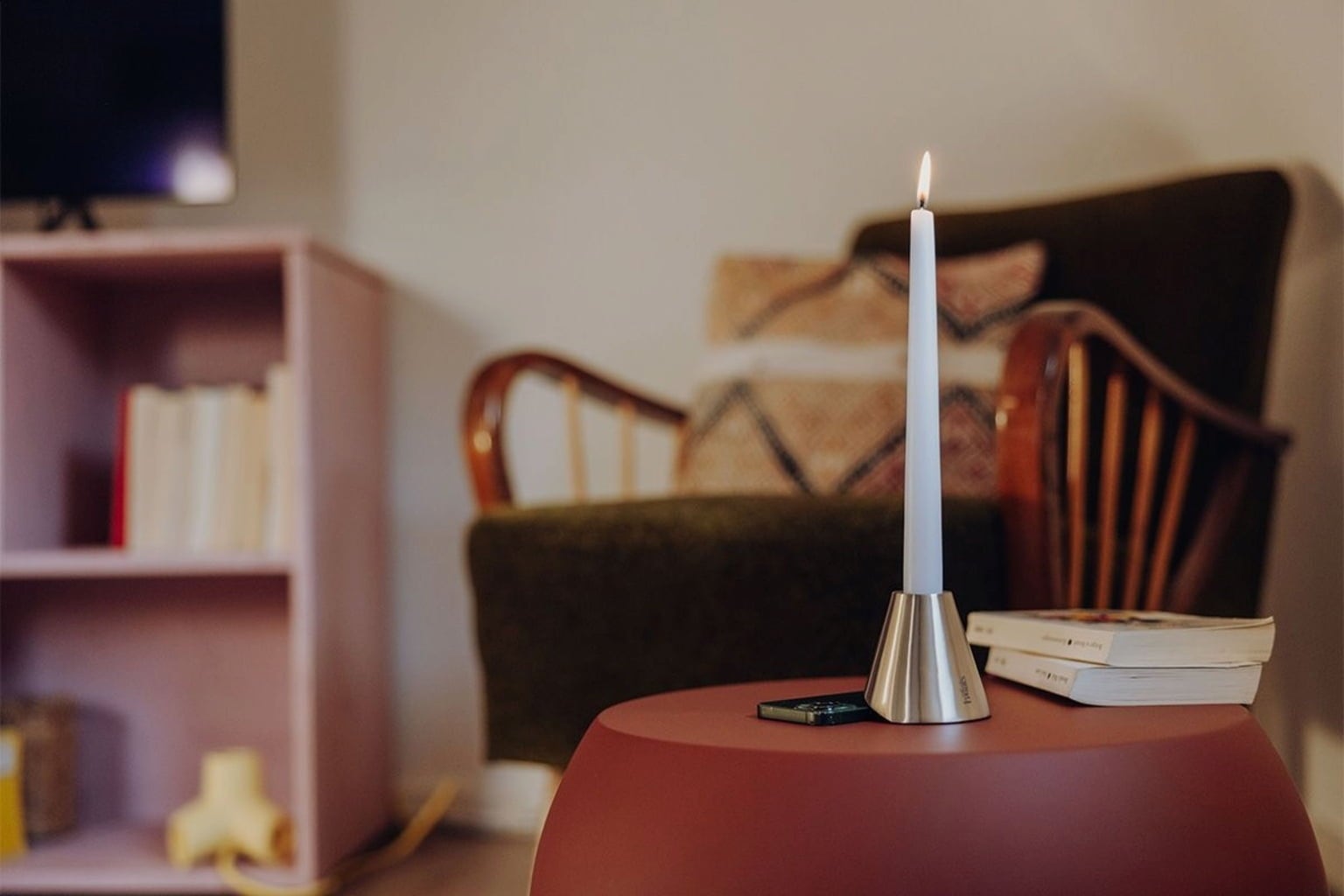 Perfekt für gemütliche Abende im Kerzenschein - ganz ohne digitale Ablenkung. Der schräg konstruierte Kerzenhalter DIGI DETOX lässt sich nämlich erst dann anzünden, wenn das Smartphone darunter gelegt wird. Eine ebenso clevere wie innovative Idee, die sich nicht nur im eigenen Zuhause wohlfühlt, sondern sich auch wunderbar als Geschenk eignet.