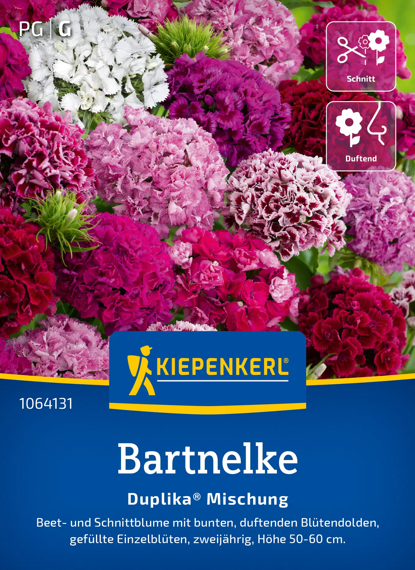 Die Bartnelke Duplika® bringt leuchtende Farben und Duft in deinen Garten. Ideal für Beete, Kübel oder als Schnittblume, zieht sie Bienen und Schmetterlinge an und sorgt für lebendige Akzente. Vorkultur im Saat- oder Frühbeet möglich, Lichtkeimer nur dünn mit Erde bedecken, ab Sommer auspflanzen und im Spätherbst mit leichtem Winterschutz abdecken. Die volle Blütenpracht entfaltet sich im zweiten Jahr – perfekt für alle, die sich auf ein blühendes Ambiente und Freude am Gärtnern freuen.