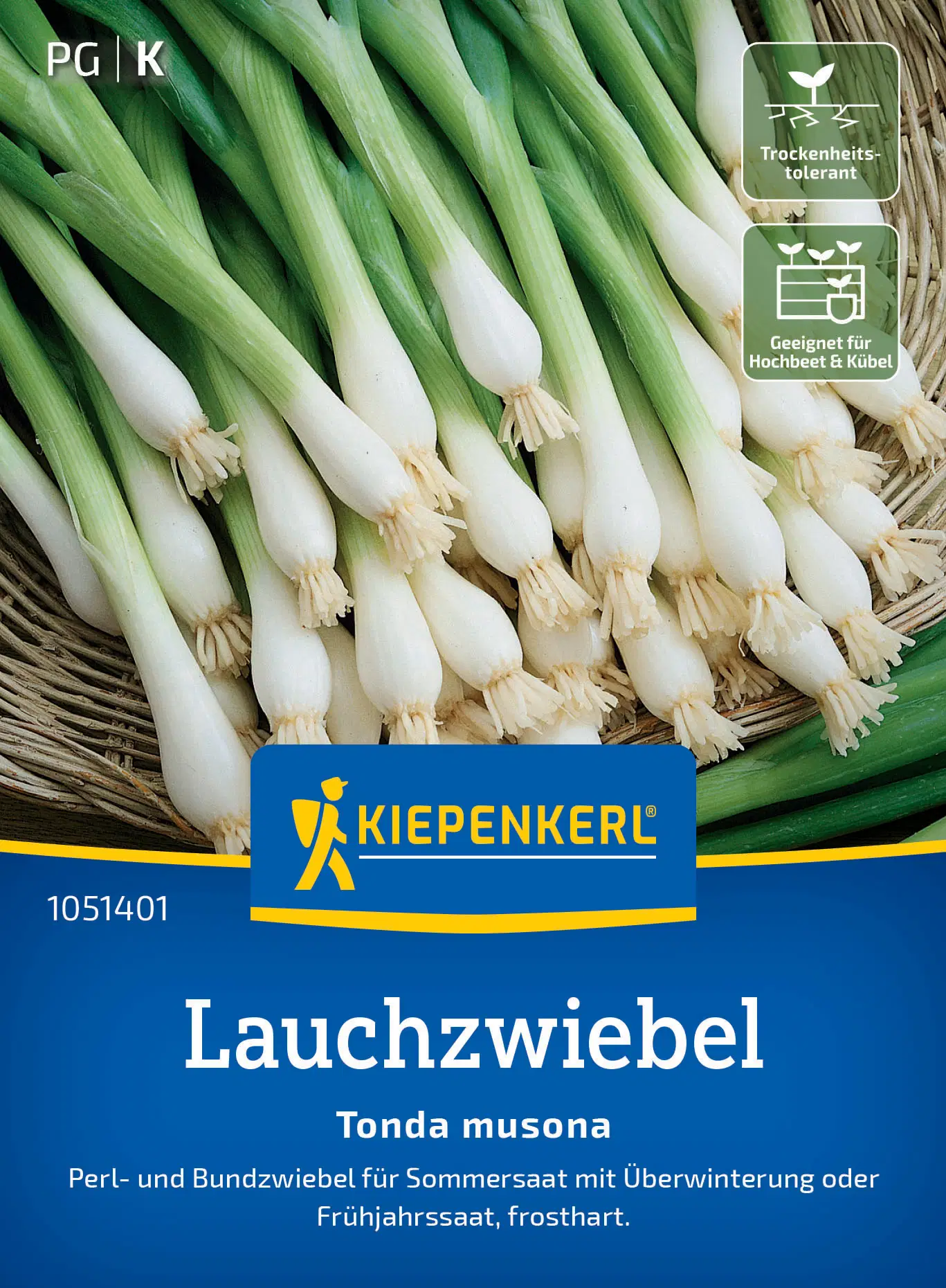 Die Lauchzwiebel 'Tonda musona' ist besonders vielseitig: Frühjahrsaussaaten liefern zarte Zwiebeln bereits im Frühsommer, Sommeraussaaten können nach Überwinterung als Perlzwiebeln im nächsten Frühjahr geerntet werden. Sie eignet sich ideal für Beete, Hochbeete oder Kübel.