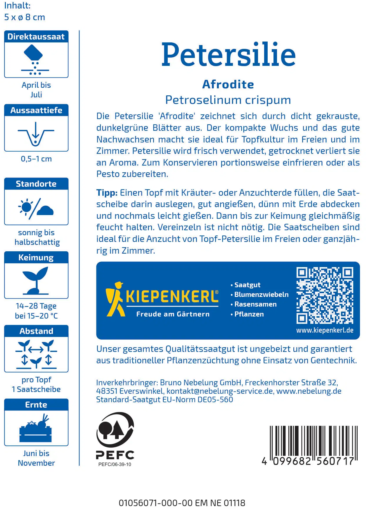Kiepenkerl Petersilie Afrodite, Saatscheibe