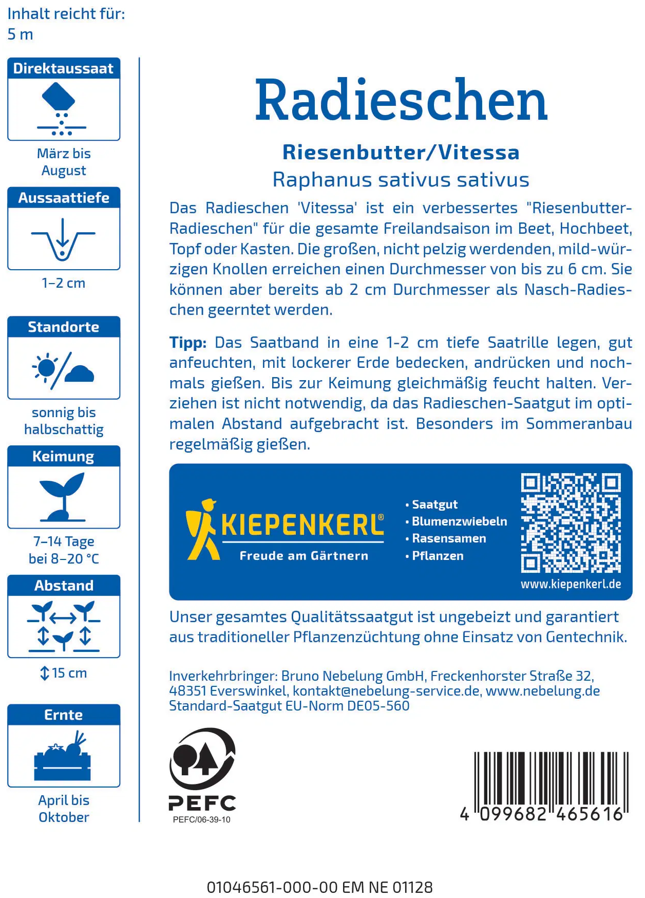 Kiepenkerl Radieschen Riesenbutter/Vitessa - Saatband