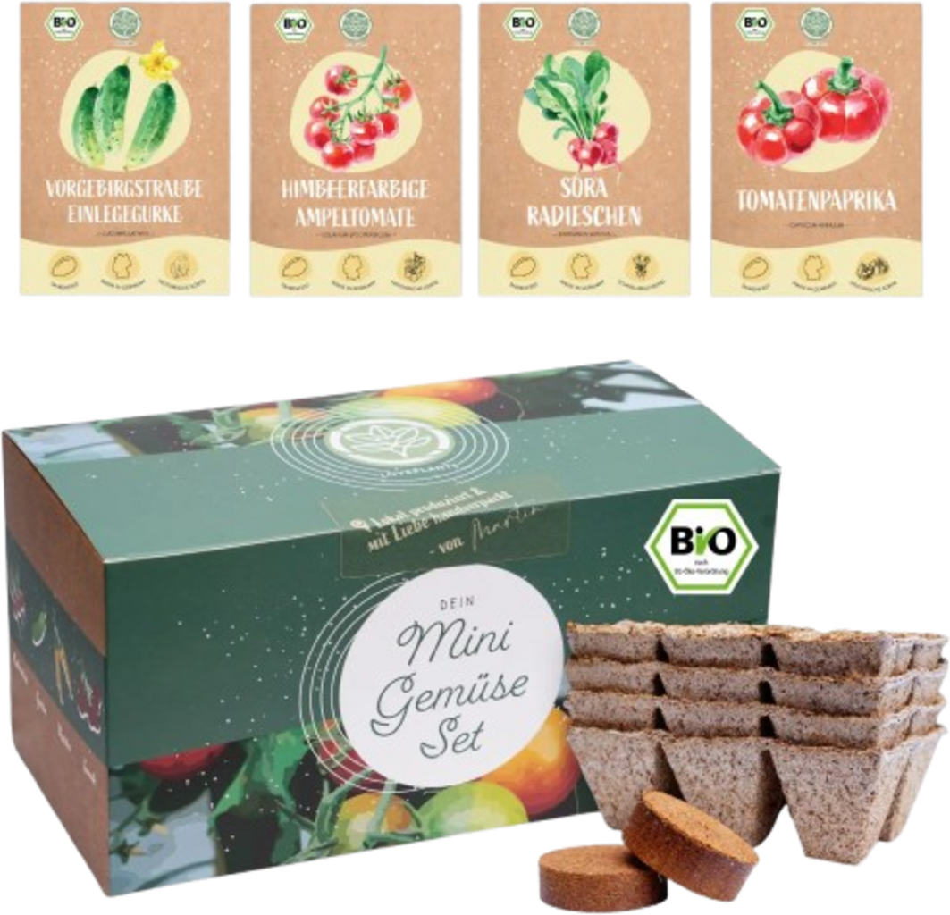 Mit diesem Gemüse Set von Loveplants kannst du sofort loslegen – ganz ohne Vorkenntnisse. Das Set enthält hochwertiges, EU-zertifiziertes Bio-Saatgut sowie alle Materialien, die du für eine erfolgreiche Anzucht brauchst. Einfach vorbereiten, aussäen und beim Wachsen zusehen