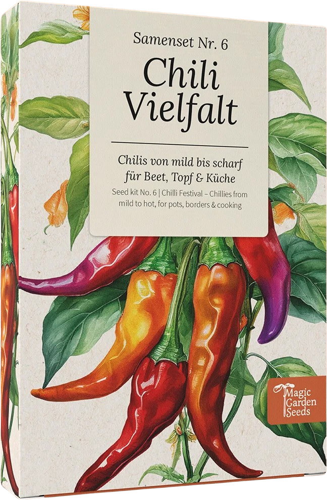 - 6 verschiedene Chili-Saatgutsorten von mild bis scharf