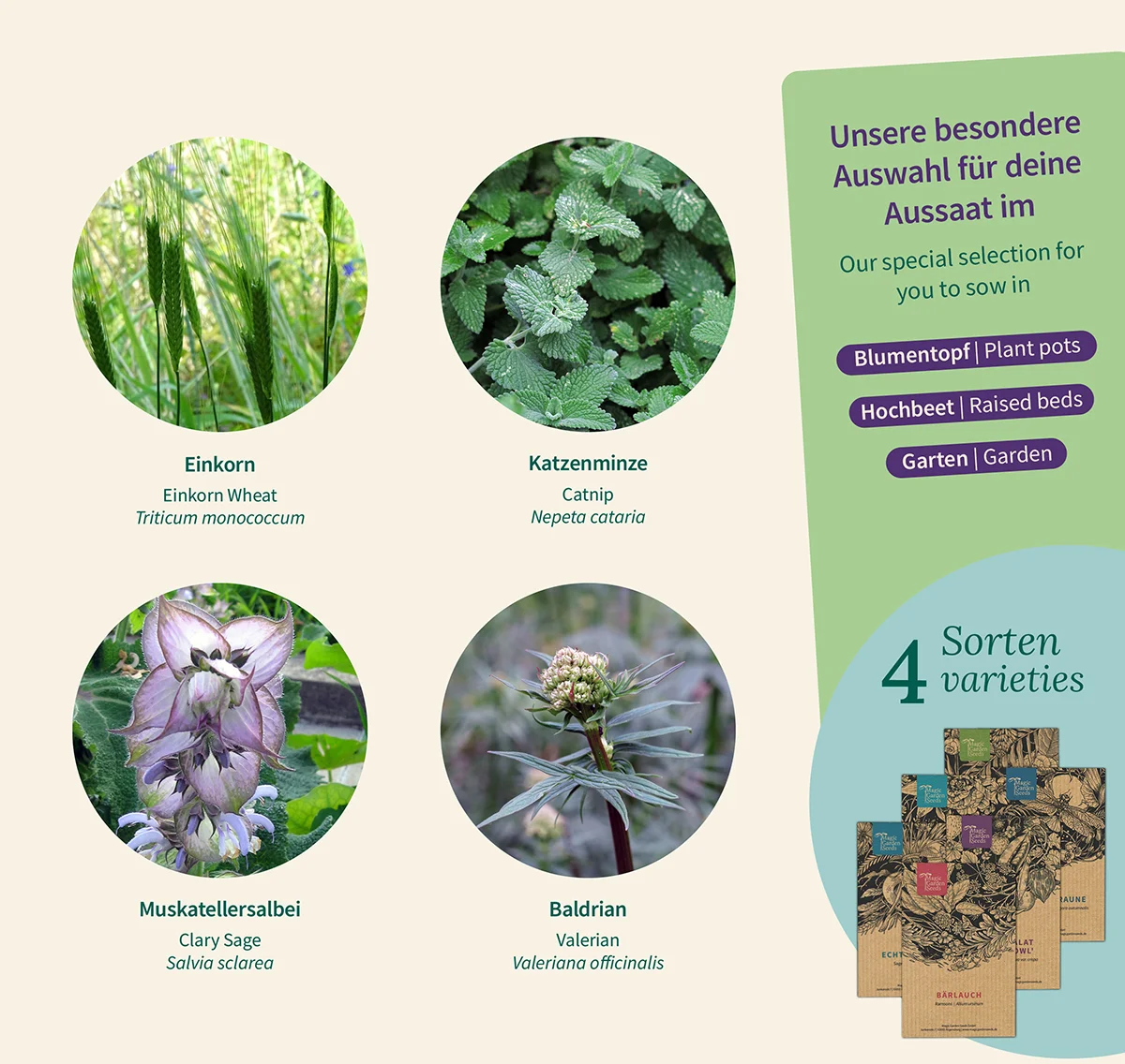 - 4 verschiedene Saatgutsorten