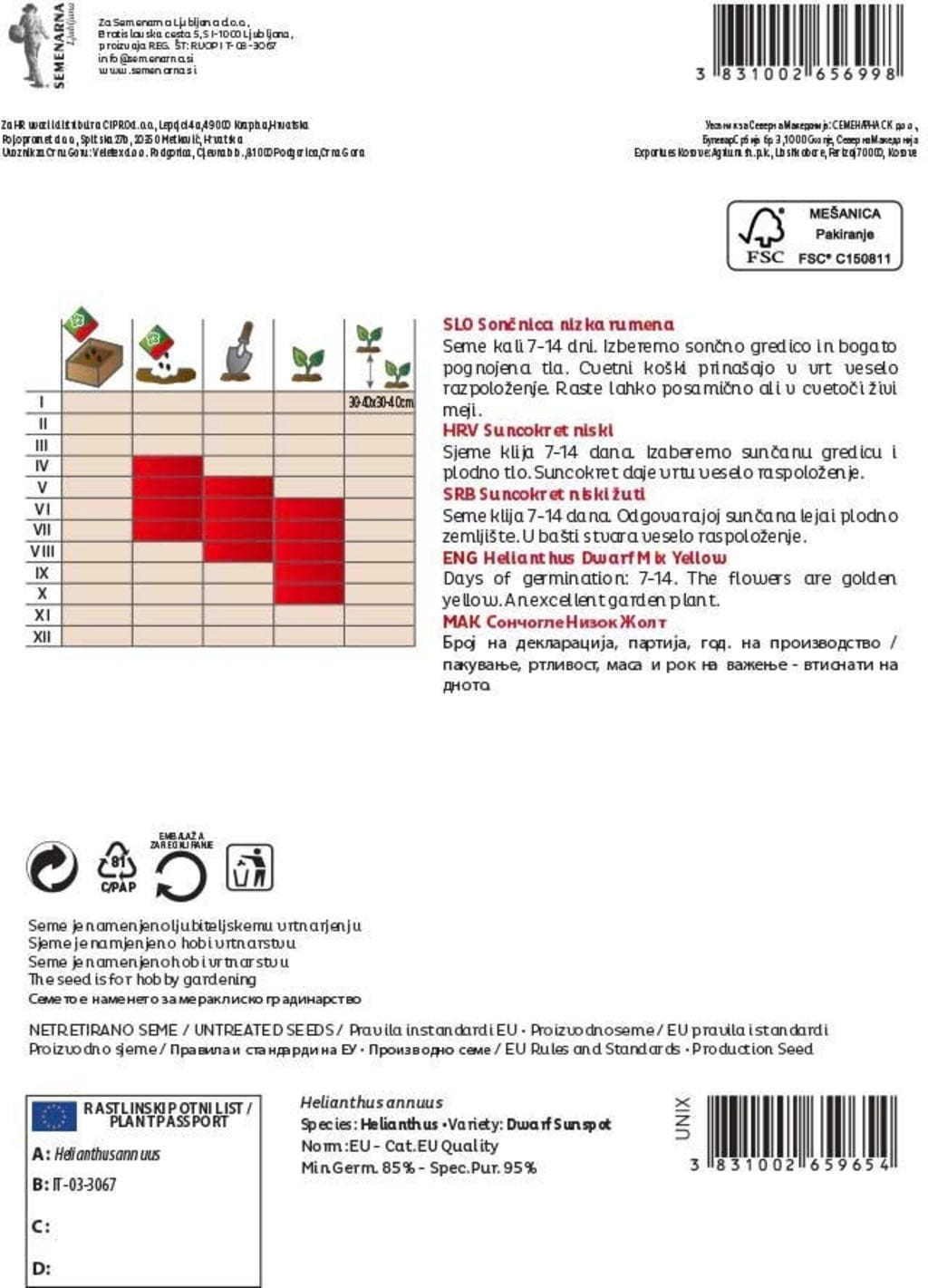 Erfahrungsberichte in Deutsch für Semenarna Ljubljana Sonnenblumensamen (niedrig, gelb)