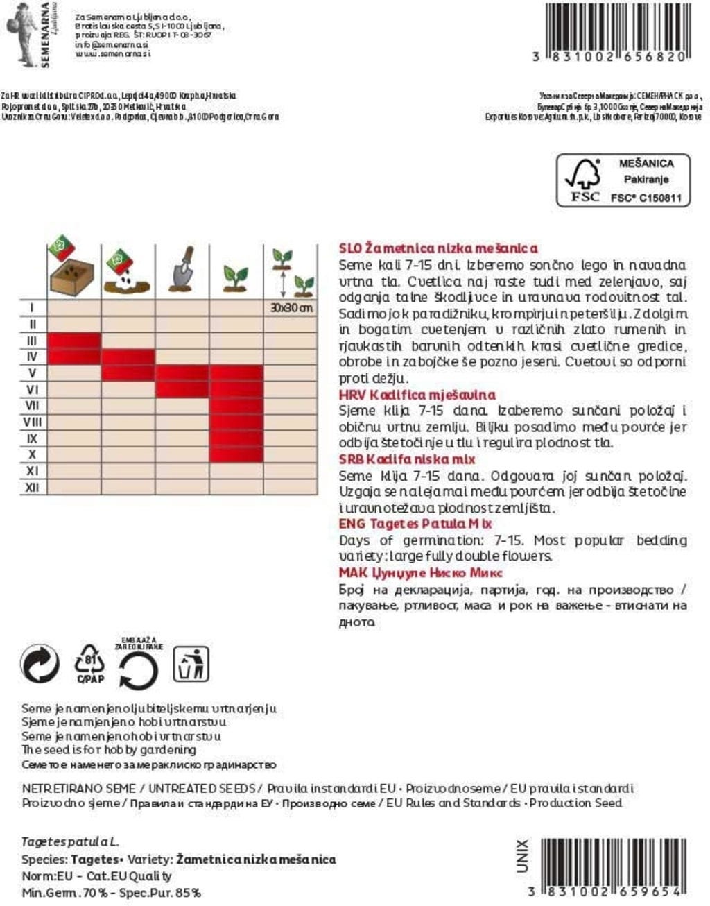 Semenarna Ljubljana Studentenblumensamen (niedrig) – Mischung, 2 g