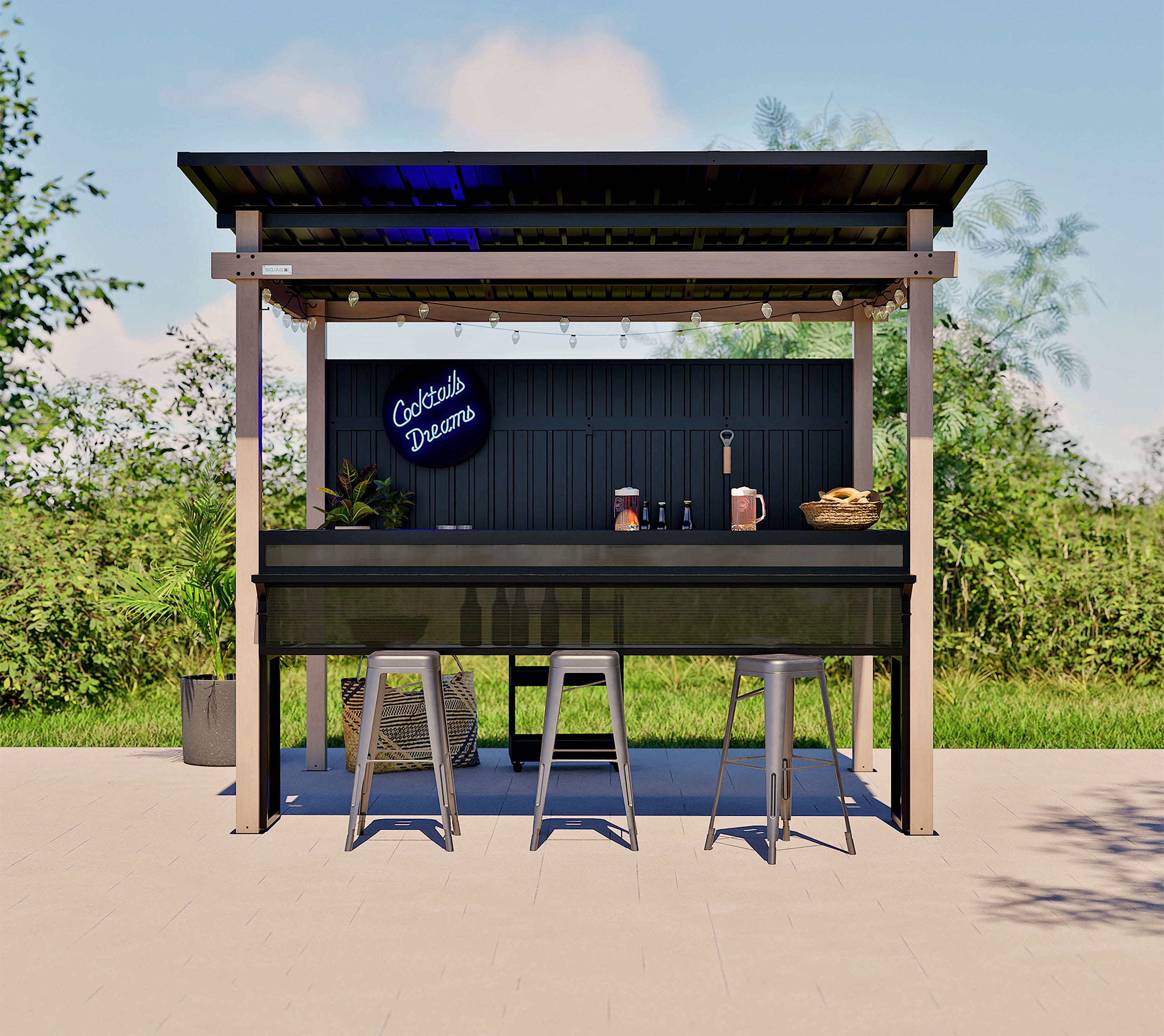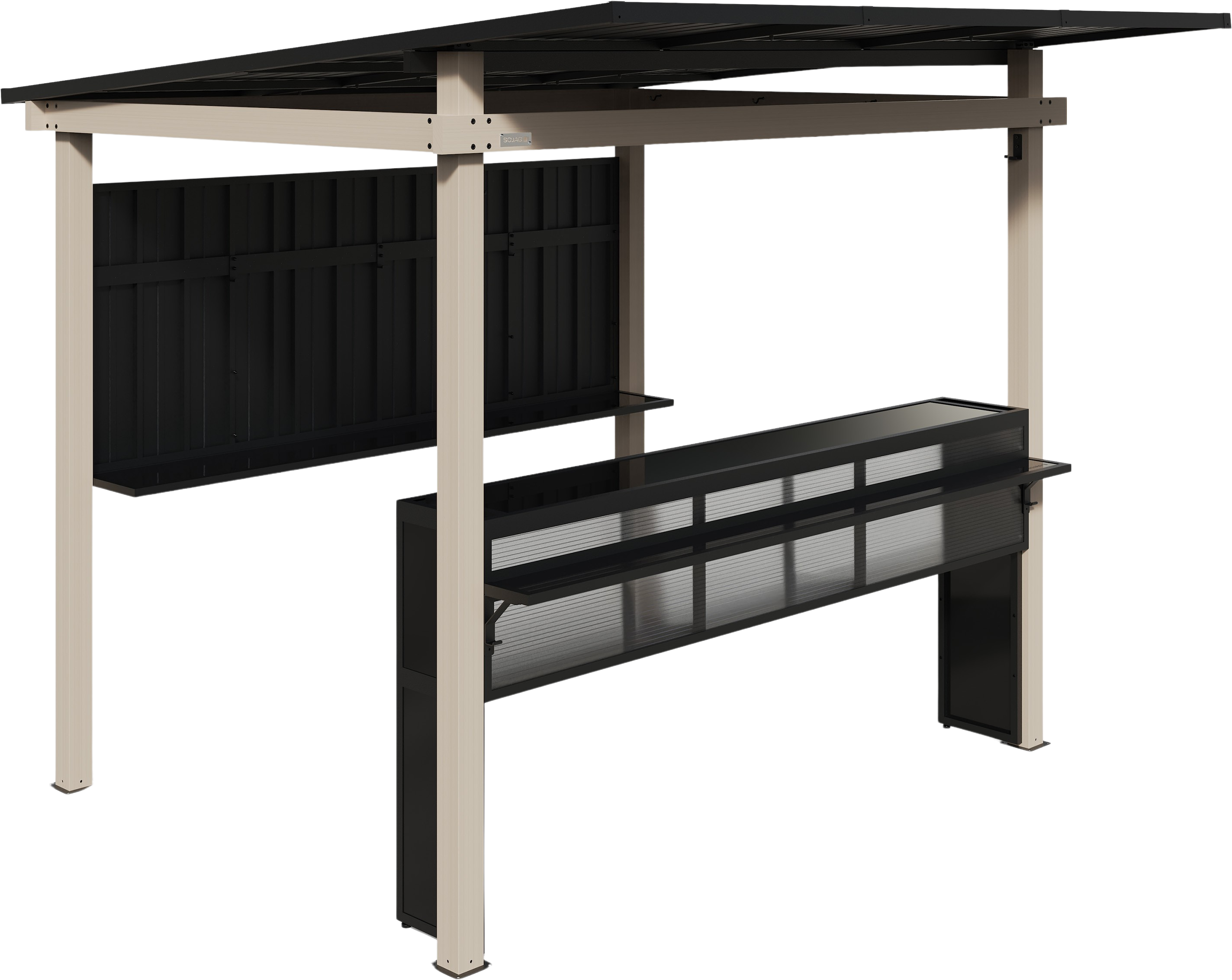 Die Outdoorbar Munich verwandelt deinen Garten in einen stilvollen Treffpunkt für Familie und Freunde. Die moderne Bar überzeugt mit einer stabilen Aluminiumkonstruktion, wetterfesten Stahlpaneelen und einer großzügigen Theke. Ob als Cocktailbar, Buffetstation beim Grillabend oder gemütlicher Treffpunkt für einen Drink – mit dieser Gartenbar schaffst du dir einen besonderen Ort für gesellige Momente im Freien.