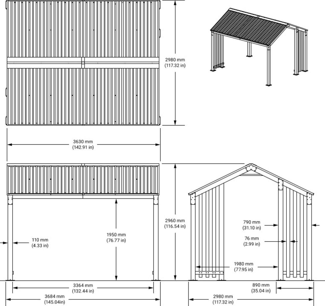 • Maße: 368 × 298 × 296 cm
