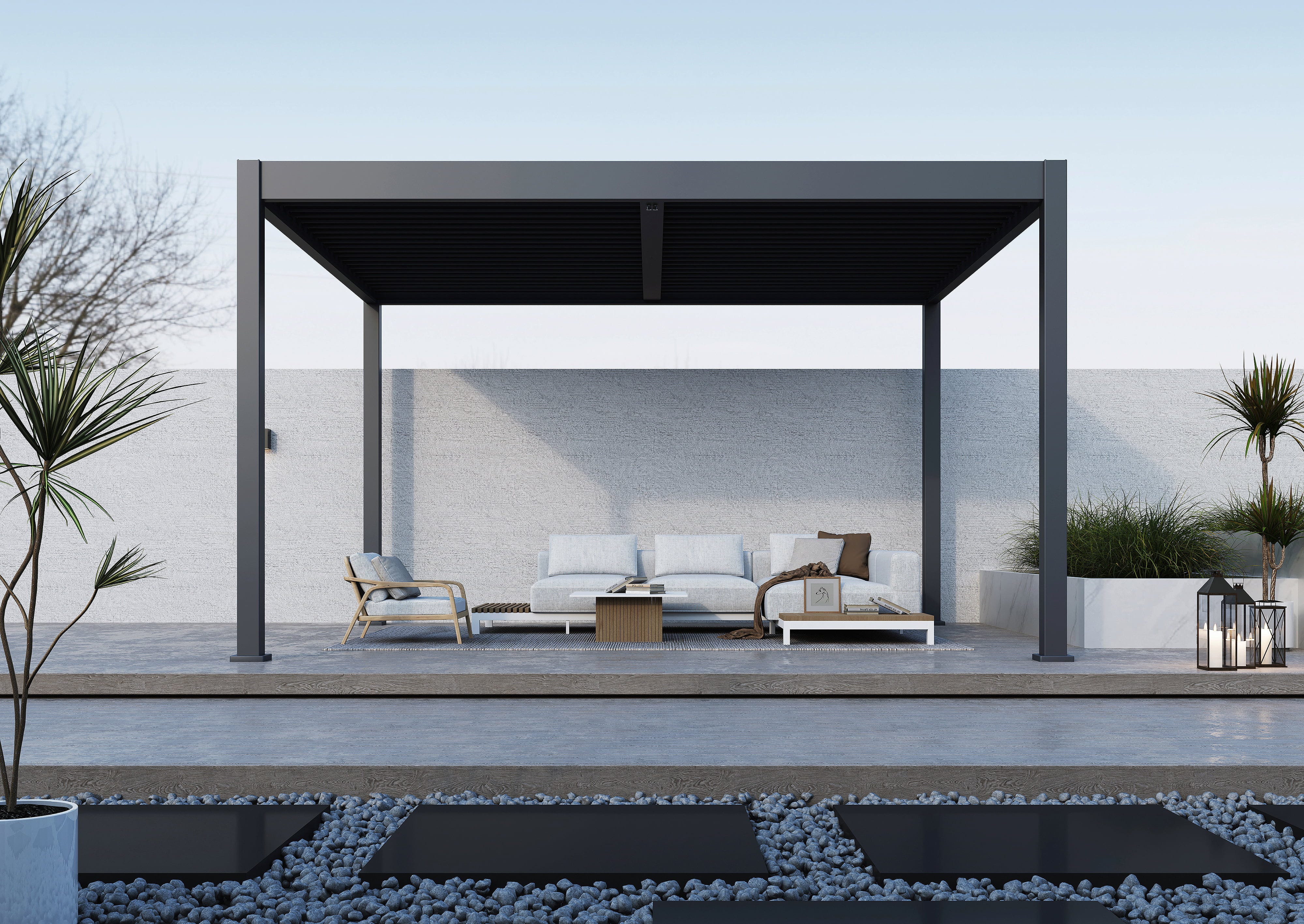 Die Paragon Grand Tuscan 1214 kombiniert minimalistisches Design mit höchster Funktionalität. Das verstellbare Lamellendach passt sich flexibel dem Sonnenstand an und sorgt für optimalen Schatten. Robust, elegant und vielseitig – deine Pergola wird zum Herzstück deines Gartens und Lieblingsplatz für entspannte Stunden!